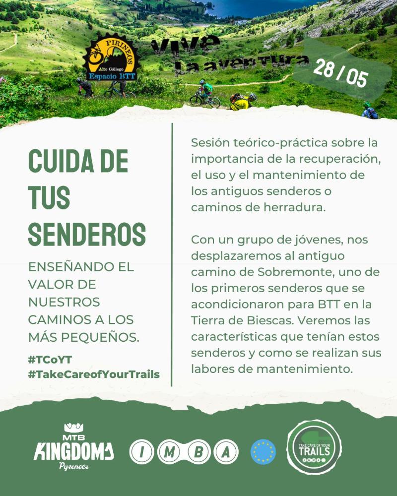 El pasado fin de semana se realizo la jornada de la Campaña Cuida de tus Senderos en el Espacio BTT Pirineos Alto Gállego, actividad promovida por IMBA Europe en los seis reinos de MTB Kingdoms.
