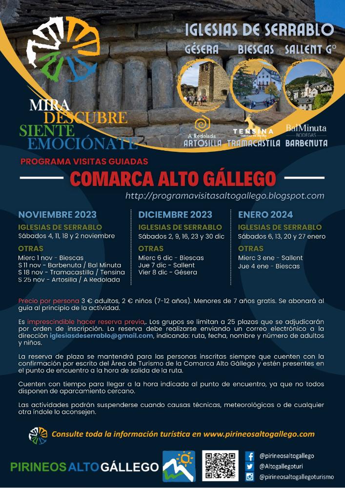 Inscripciones: envia un correo electrónico a iglesiasdeserrablo@gmail.com indicando fecha, ruta, nombre, número de adultos y niños y un número de teléfono móvil en el que poder contactar si fuese necesario.